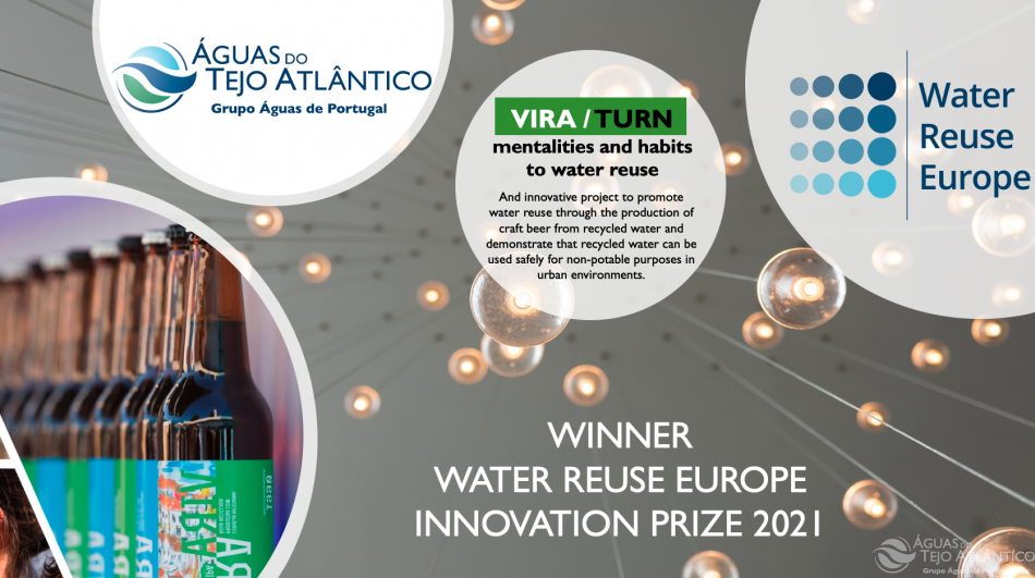 O projeto Vira criado pela Tejo Atlântico  e baseado no conceito de mudança de mentalidades e de atitudes, venceu hoje o Water Reuse Europe 2021 Innovation Prize, confirmando o carater inovador desta iniciativa de comunicação que tem como objetivo angariar fans e apoiar decisores na implementação de boas práticas ambientais, na utilização racional da água e o seu aproveitamento depois do tratamento para reutilização com aptidão para rega de espaços verdes, lavagem de ruas e na industria.