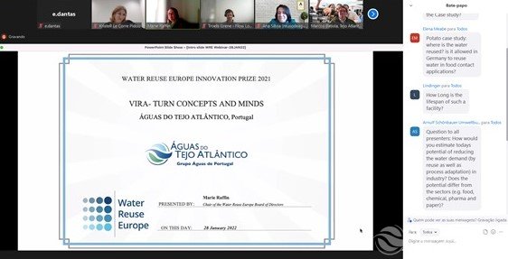 A atribuição do prémio de vencedor foi efetuada durante o Webinar on Industrial Reuse, promovido pela Water Reuse Europe.