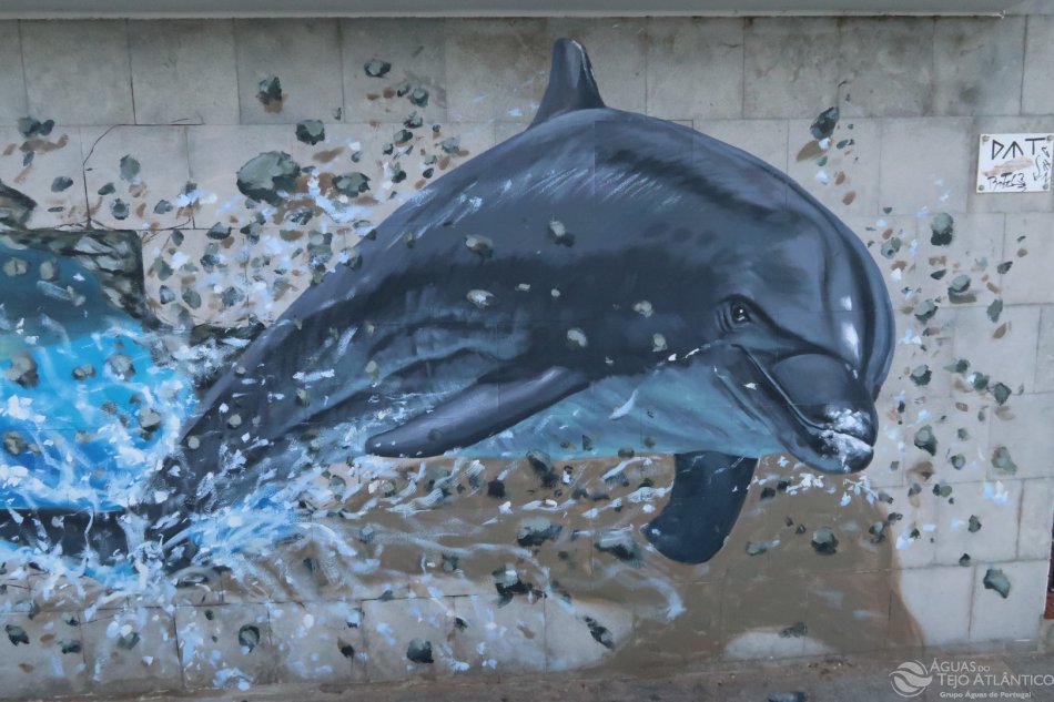 As infraestruturas da Águas do Tejo Atlântico estão a ganhar vida e cor! Desta vez, foi a Estação Elevatória de Monte de Estoril, em Cascais, que recebeu a intervenção artística de Tiago Hacke com pinturas de vários golfinhos, uma iniciativa no âmbito do projeto “Há ART nas Fábricas de Água”.