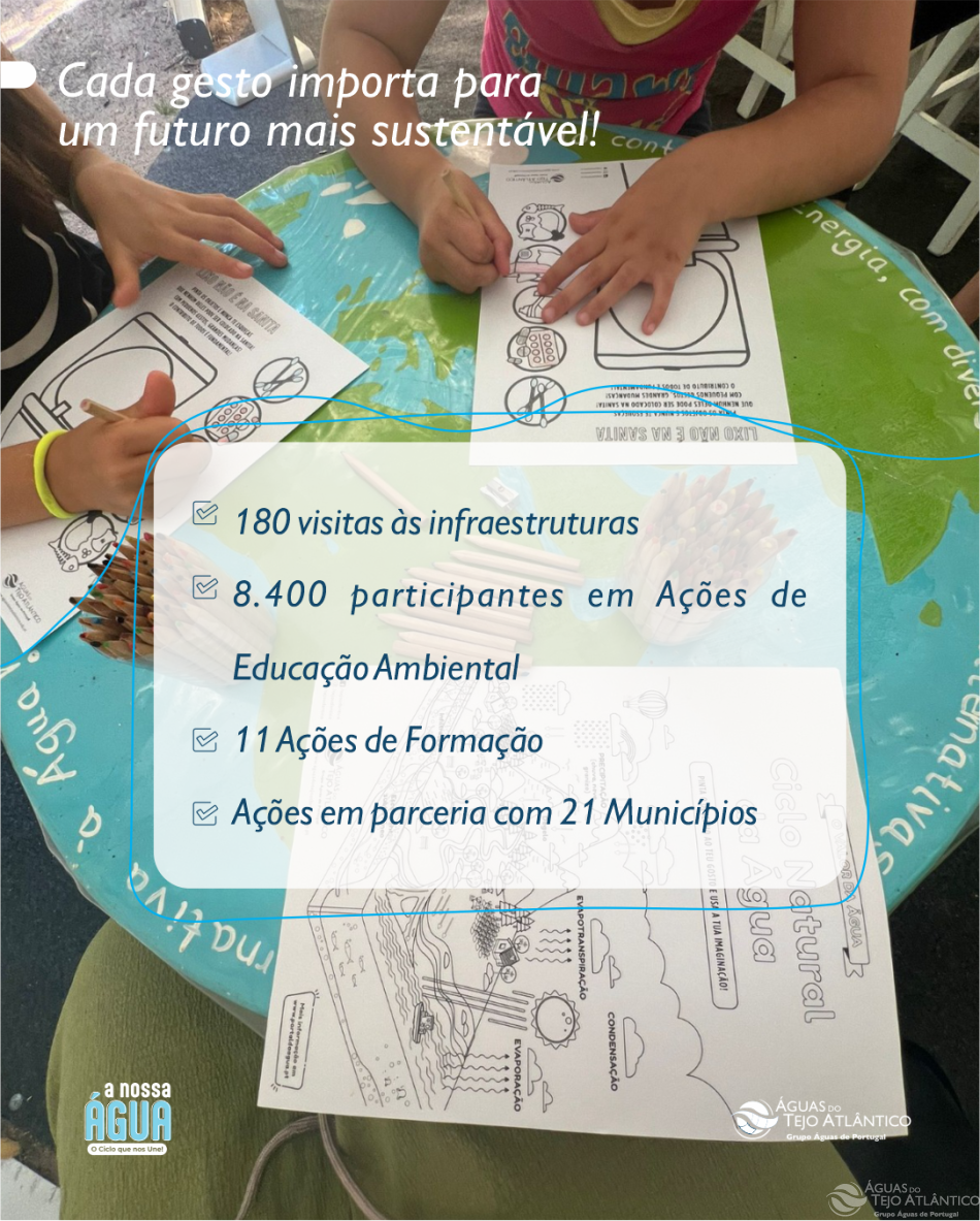 Com estes números e resultados expressivos, a Águas do Tejo Atlântico reafirma o seu papel fundamental na promoção da educação ambiental, contribuindo para um futuro mais sustentável e consciente.